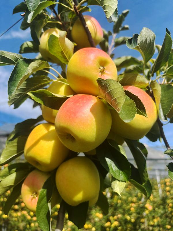 La plus célèbre des pommes, à la peau jaune clair, à la chair ferme et juteuse, offre un goût spécifique grâce au terroir sur lequel nous la cultivons.